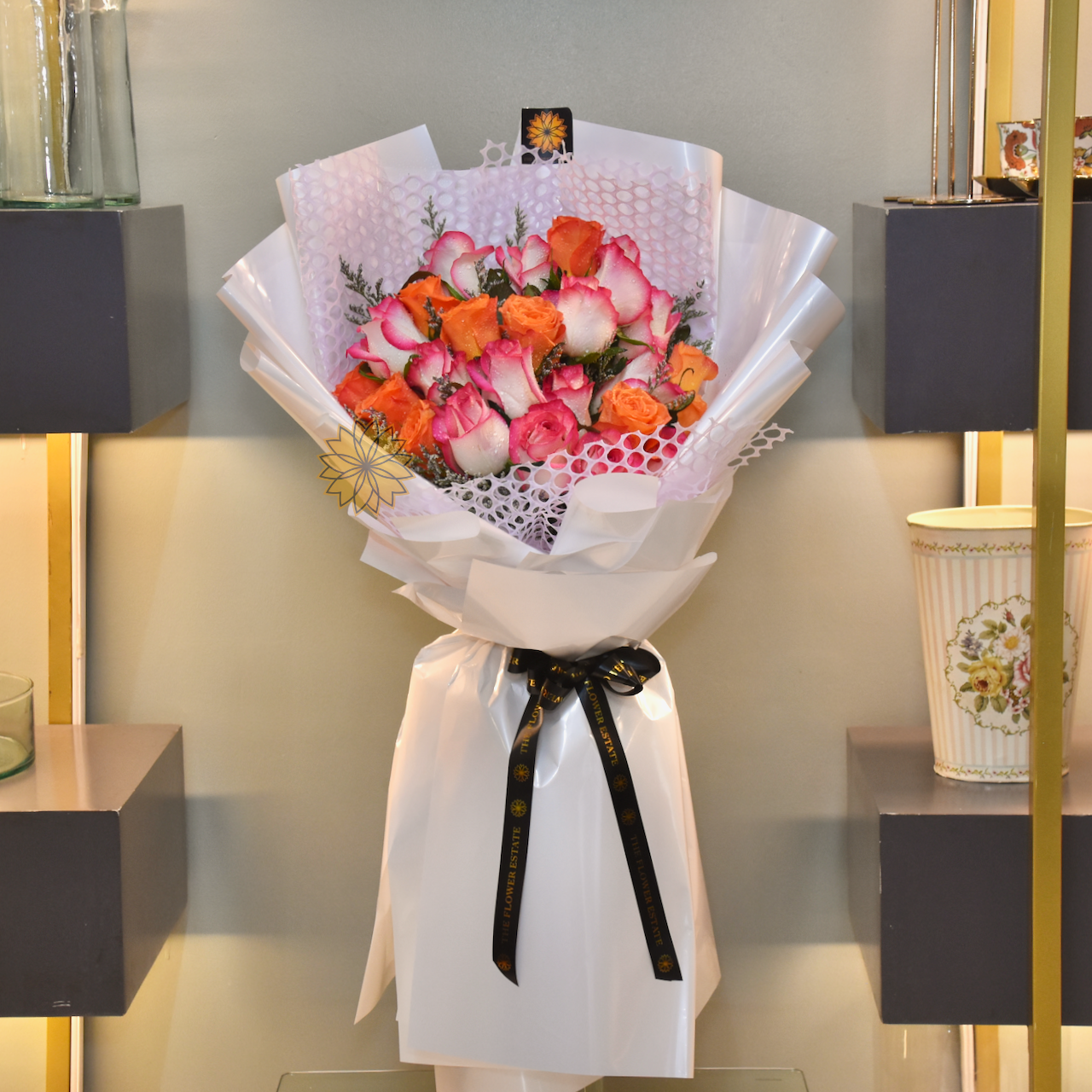 20pcs Pink and Orange Colombian Roses Bouquet